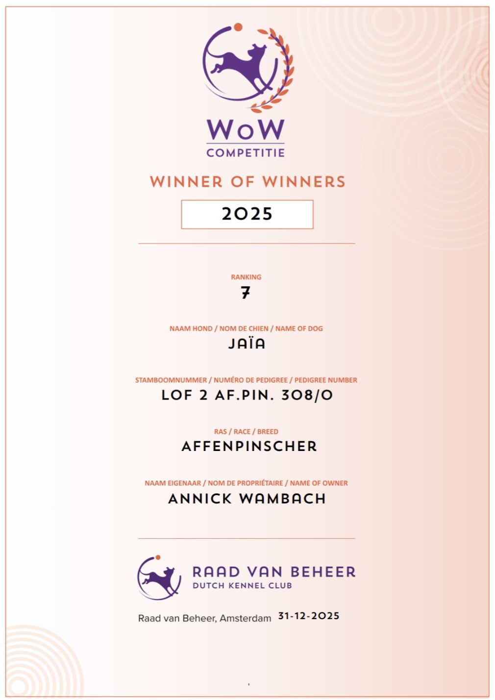 besten Affenpinscher bei der WoW Competitie -